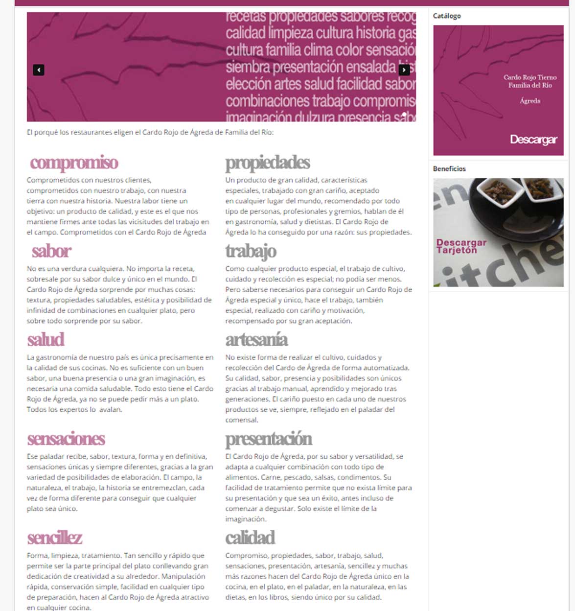 El diseño de la página web de Familia del Río, con su producto estrella, el Cardo Rojo de Ágreda debía cumplir todas esas funciones.