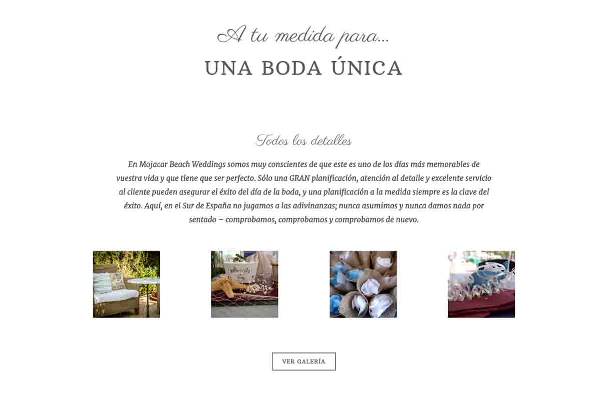 El diseño de la página web de Mojacar Beach Weddings es uno de los más satisfactorios a nivel personal que he realizado hasta ahora. Principalmente por la temática.